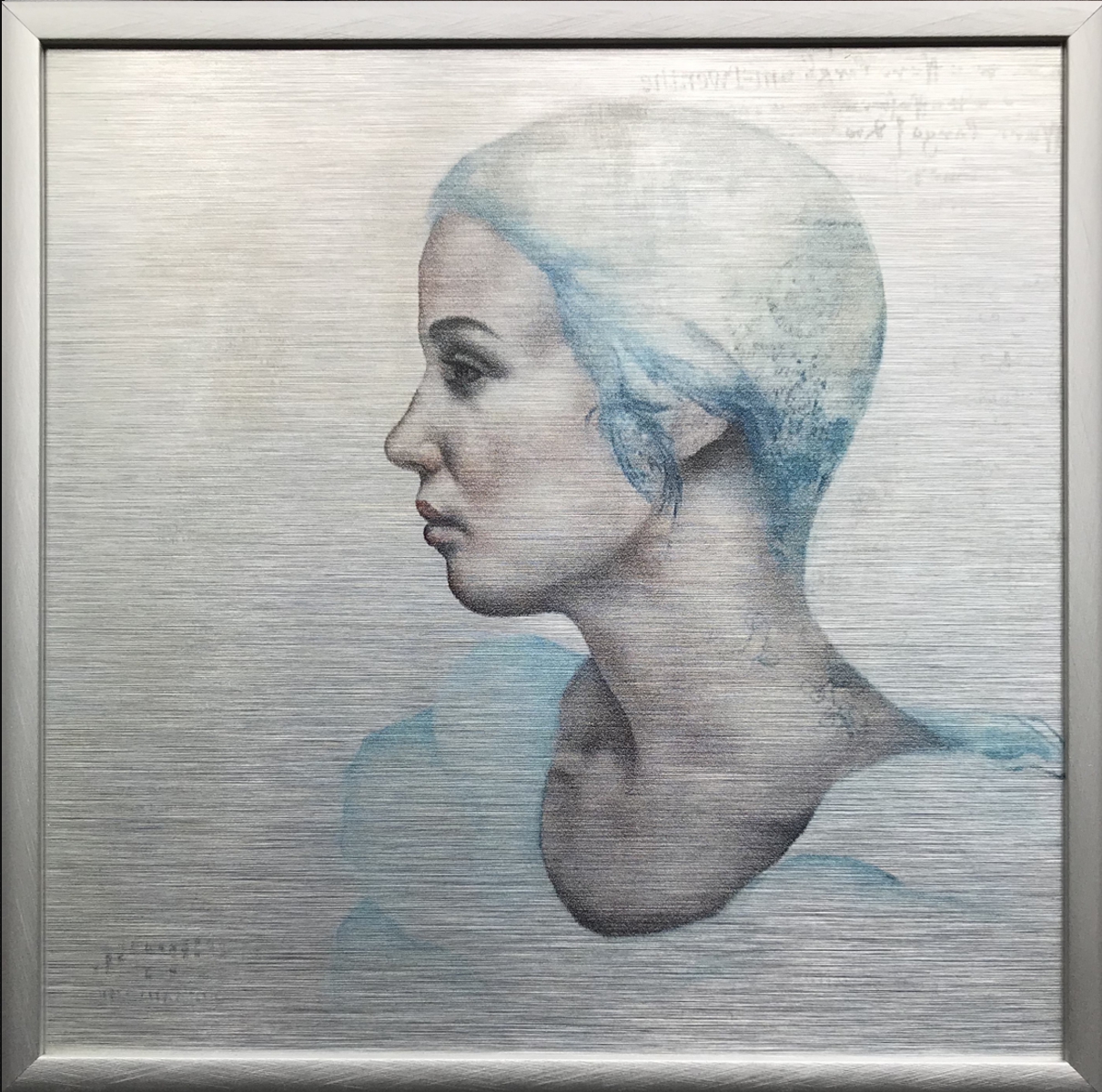 The aluminium prints below measure 15×15 cm and are made of brushed aluminium, which means they look different every time the light changes.